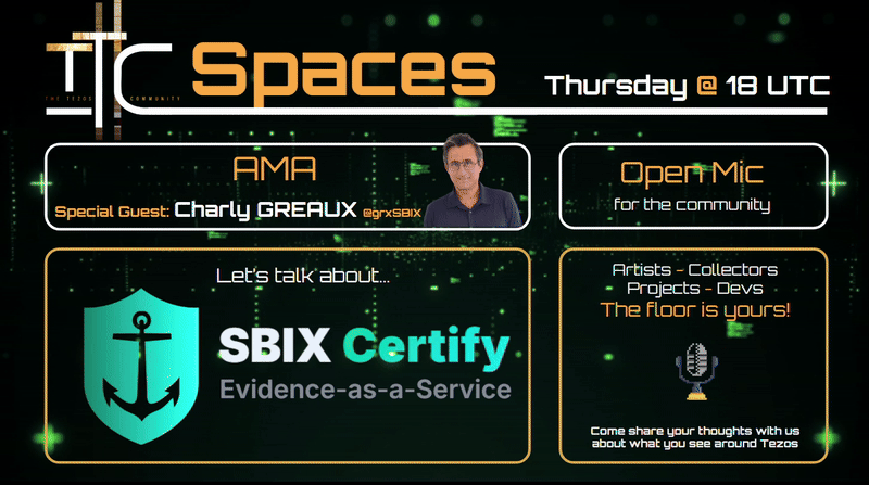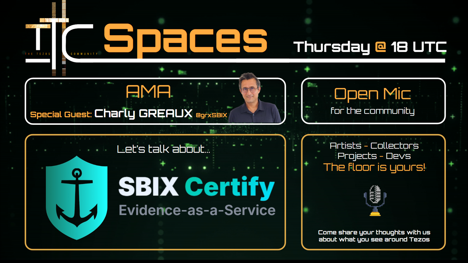 For d3V W33k’s space, we’ve invited Charly Greaux, the founder of GlabTech, who is developing a sovereign proof infrastructure for regulated finance anchored on Tezos, called SBIX Certify. This service allows creators, like artists, to secure court-admissible timestamped proof of ownership and copyright, acting as a digital notary that never sees or stores the actual files